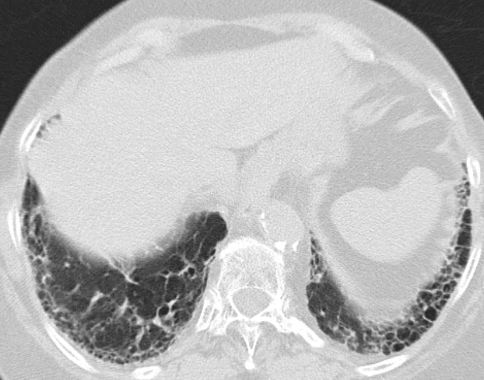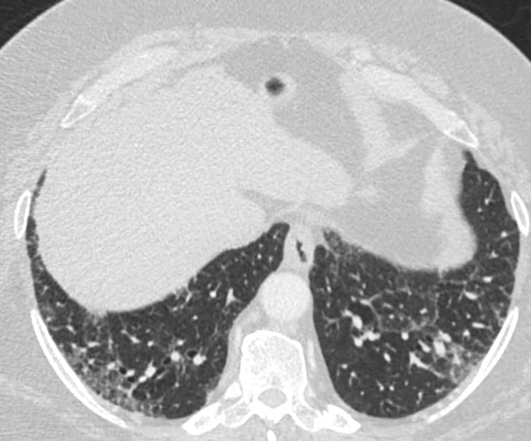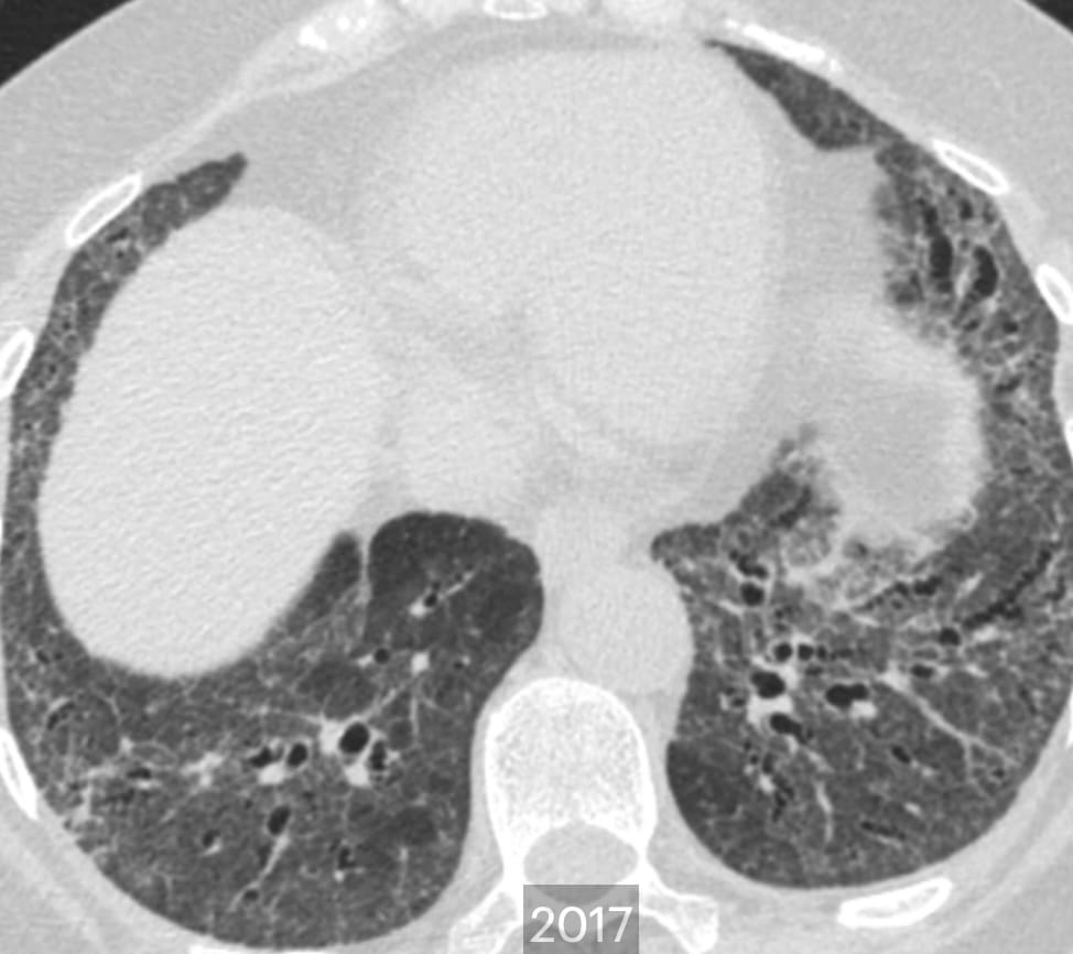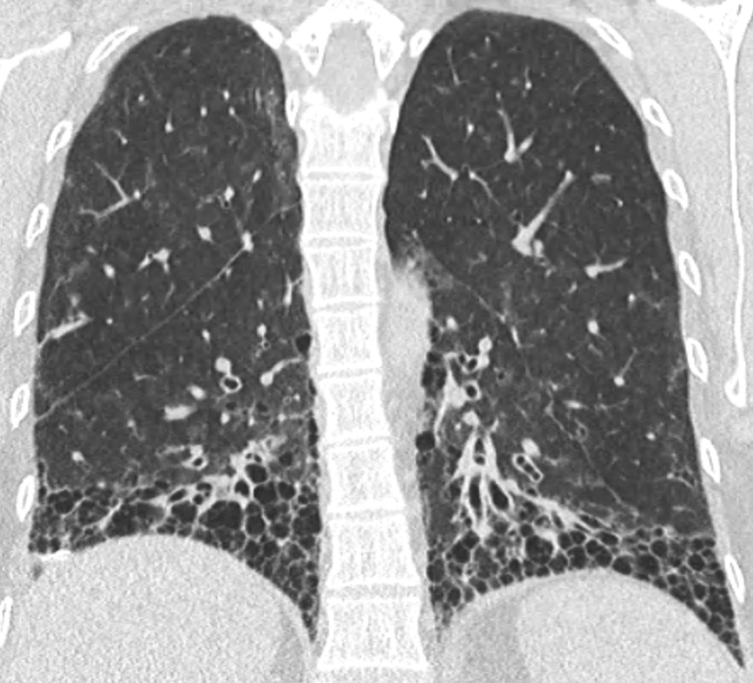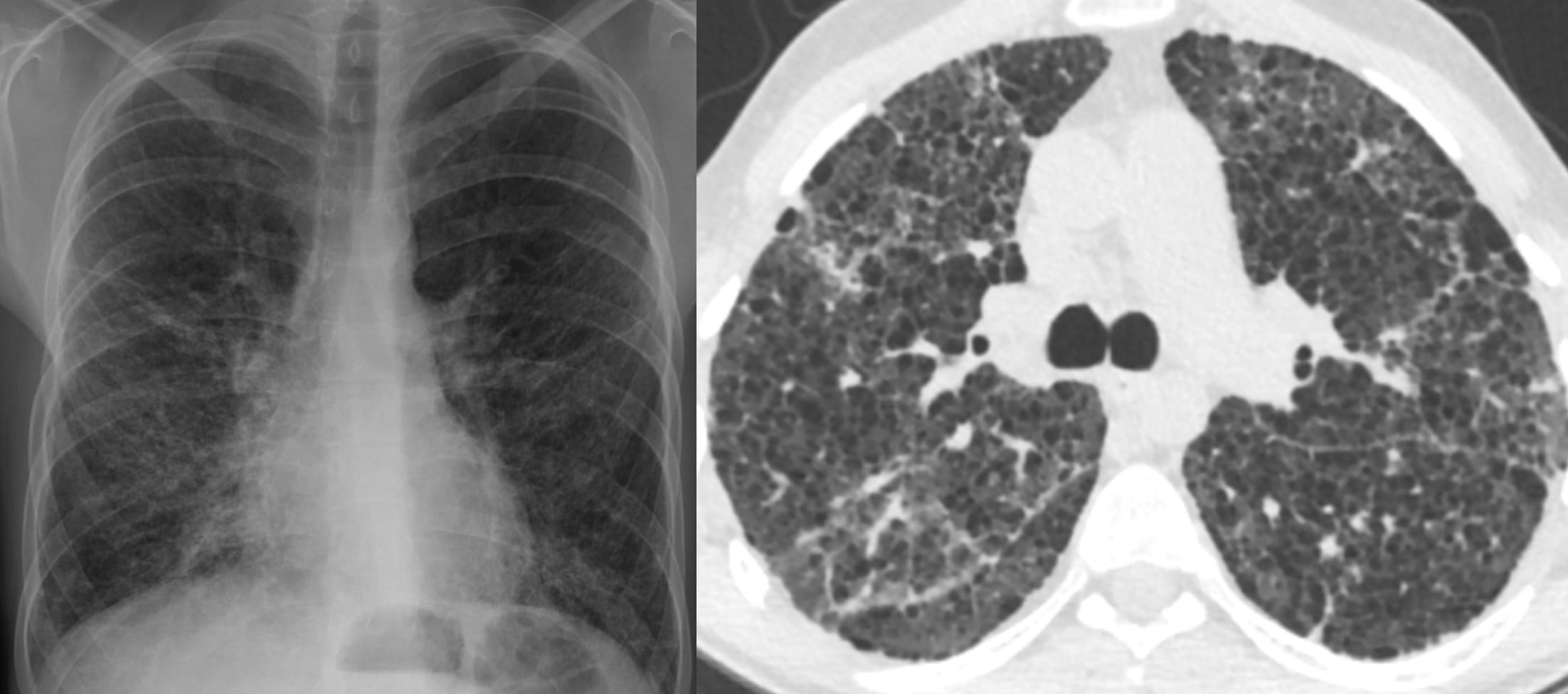 - Interstitial fibrosis with non-emphysematous lung cysts