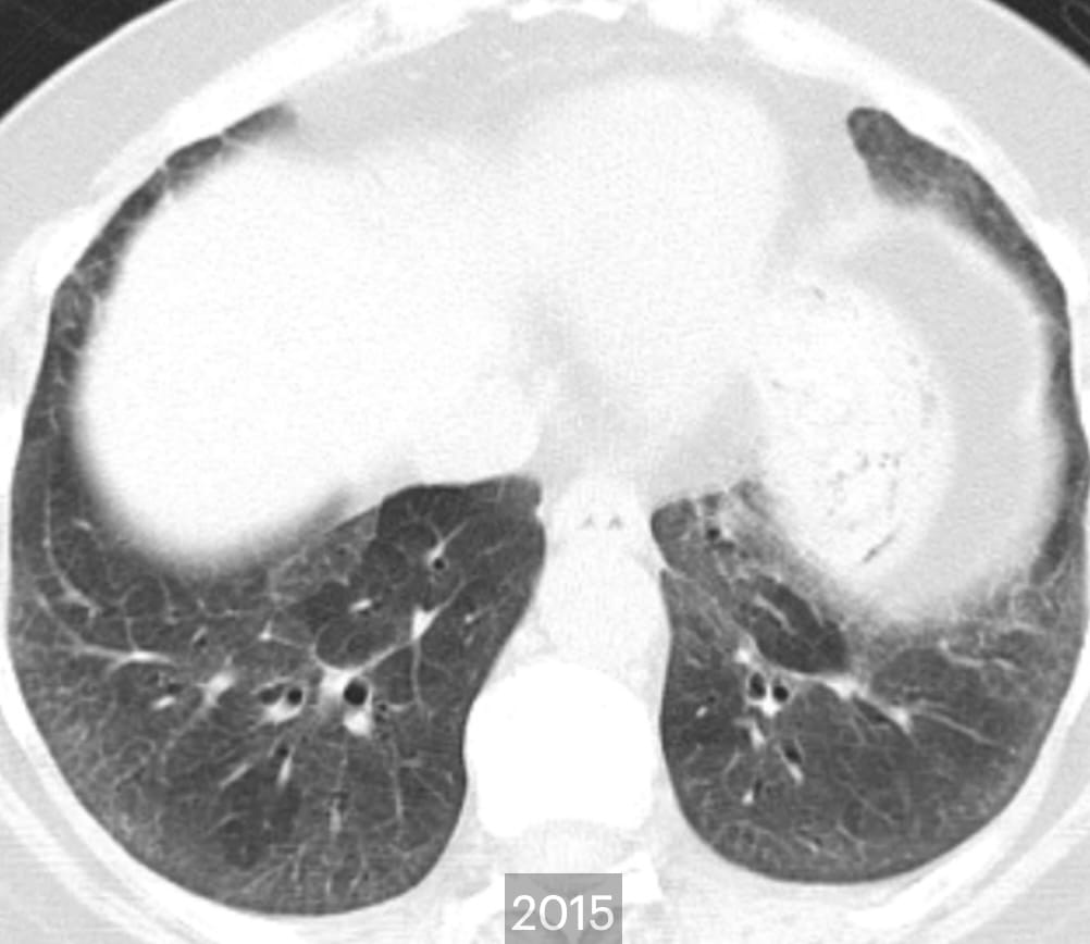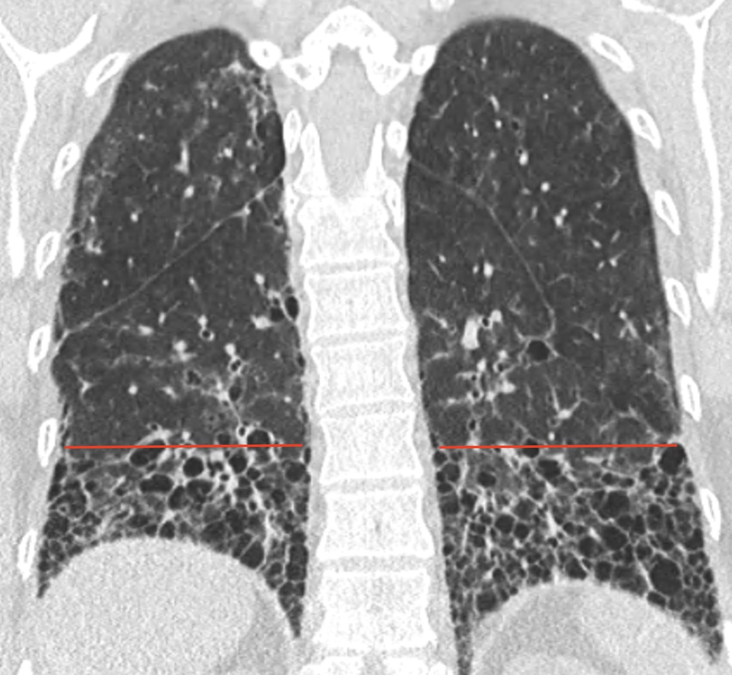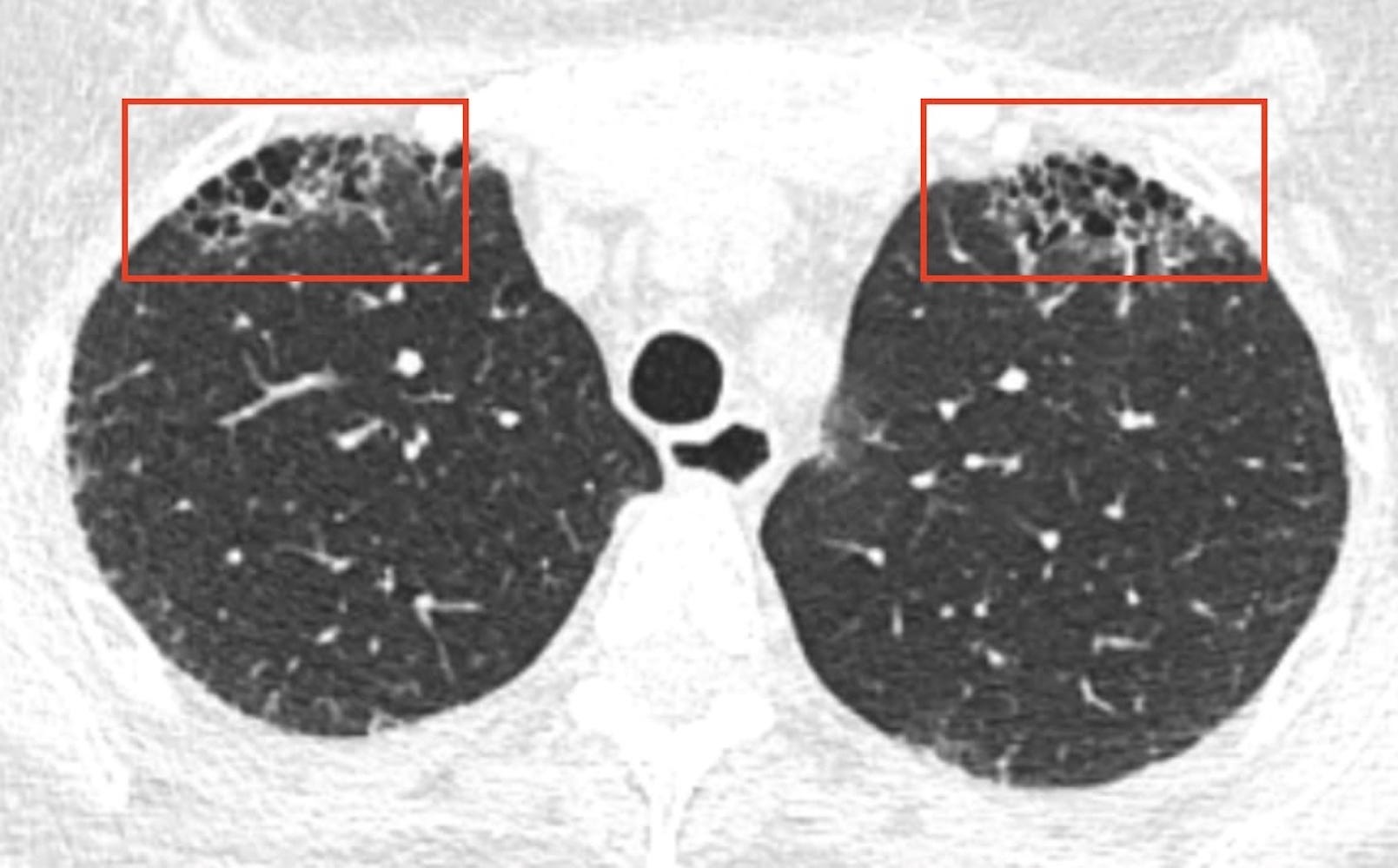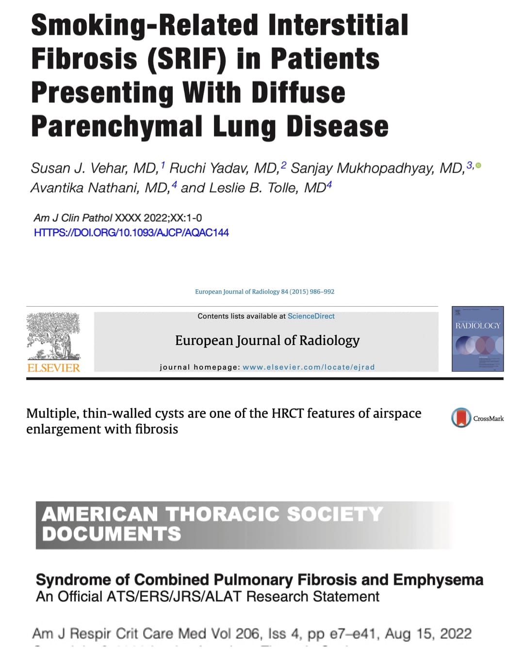 - Interstitial fibrosis with non-emphysematous lung cysts