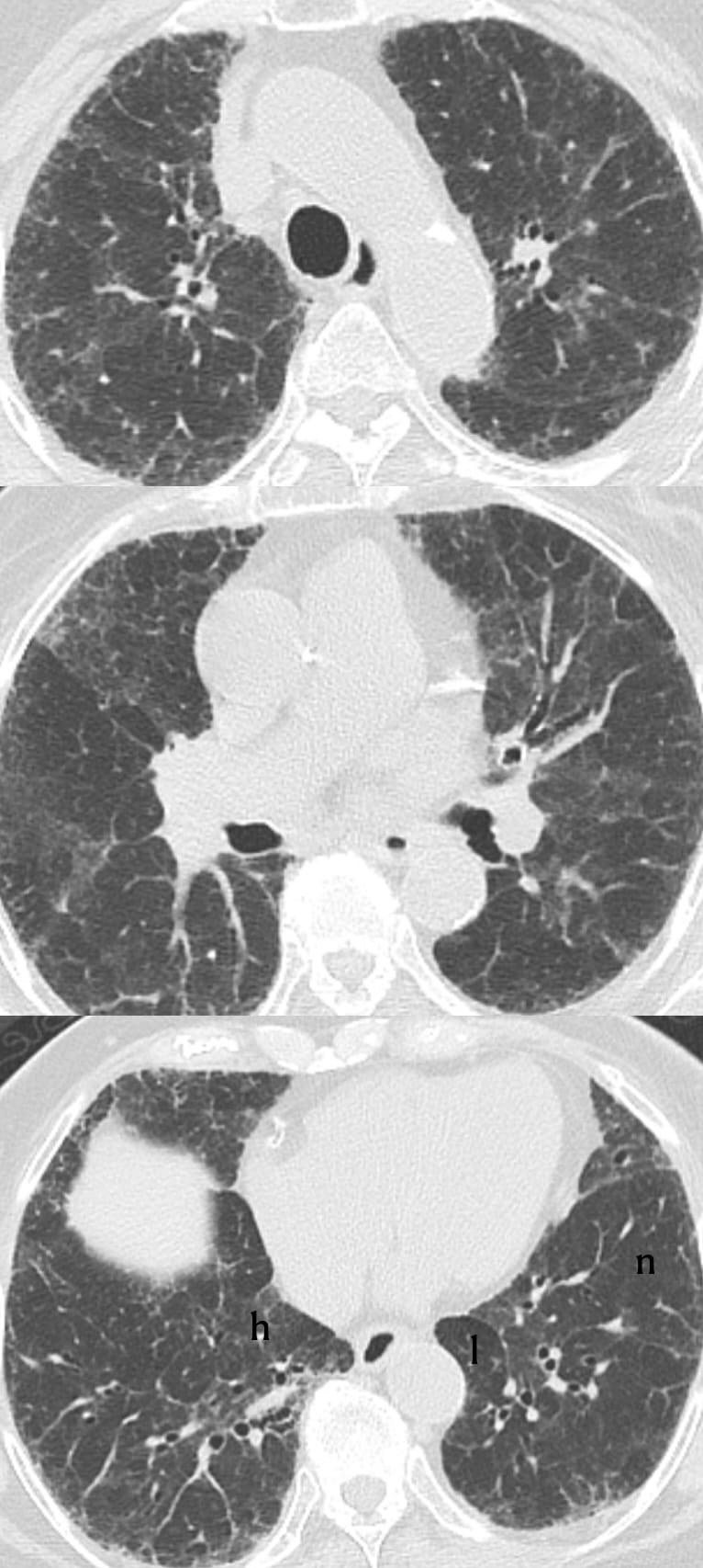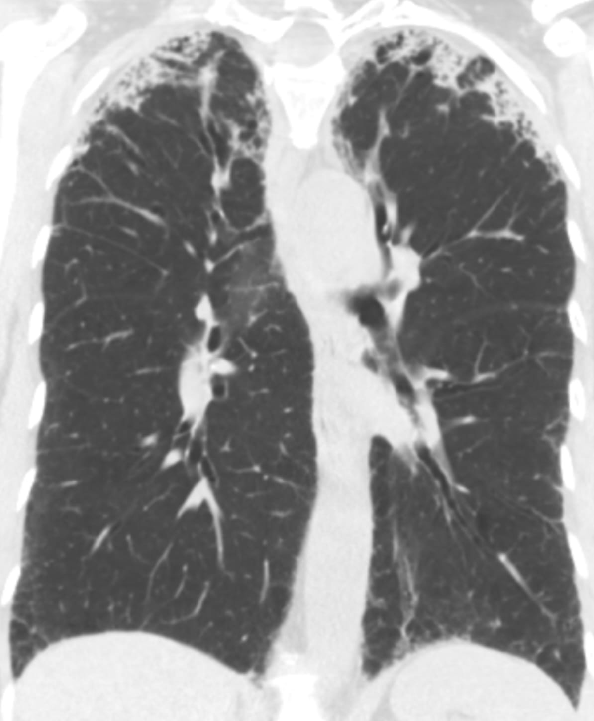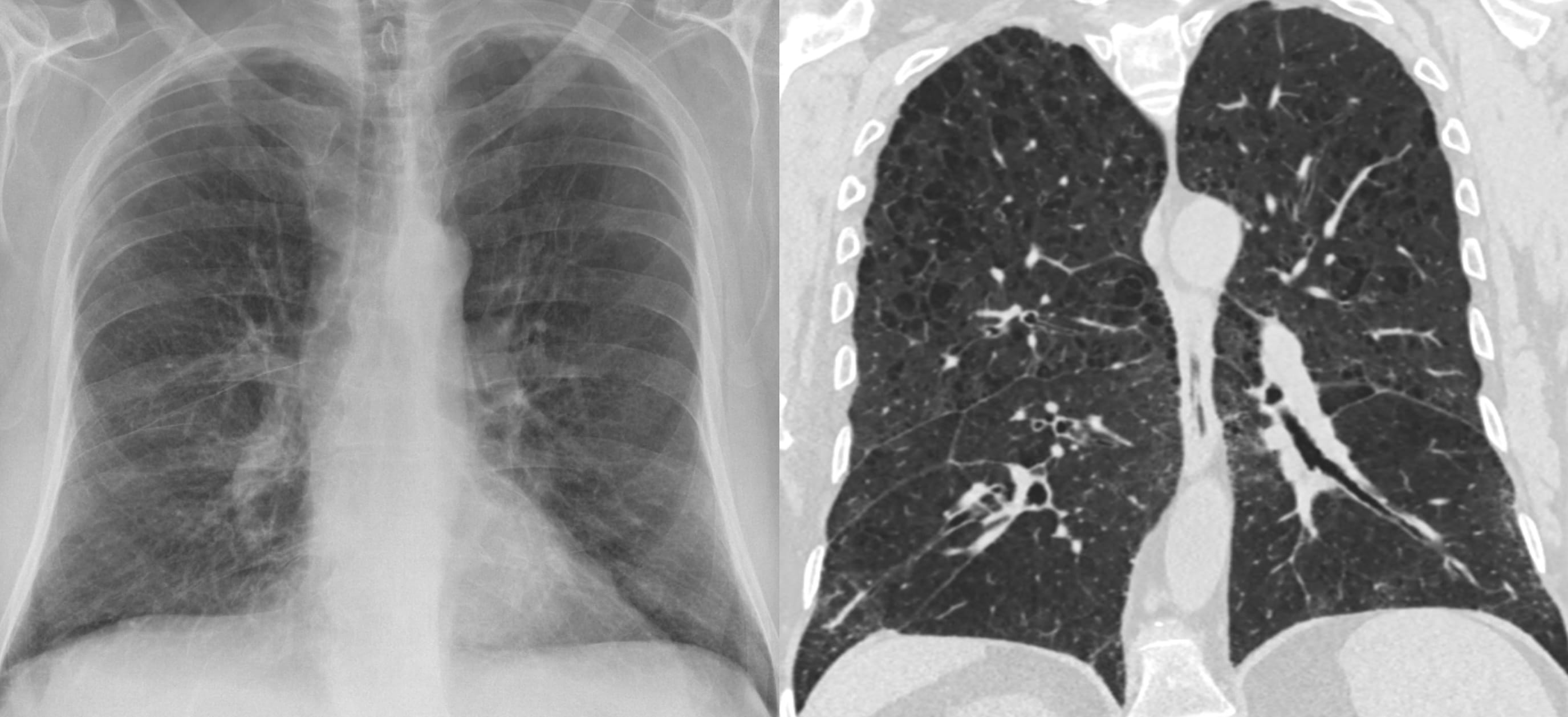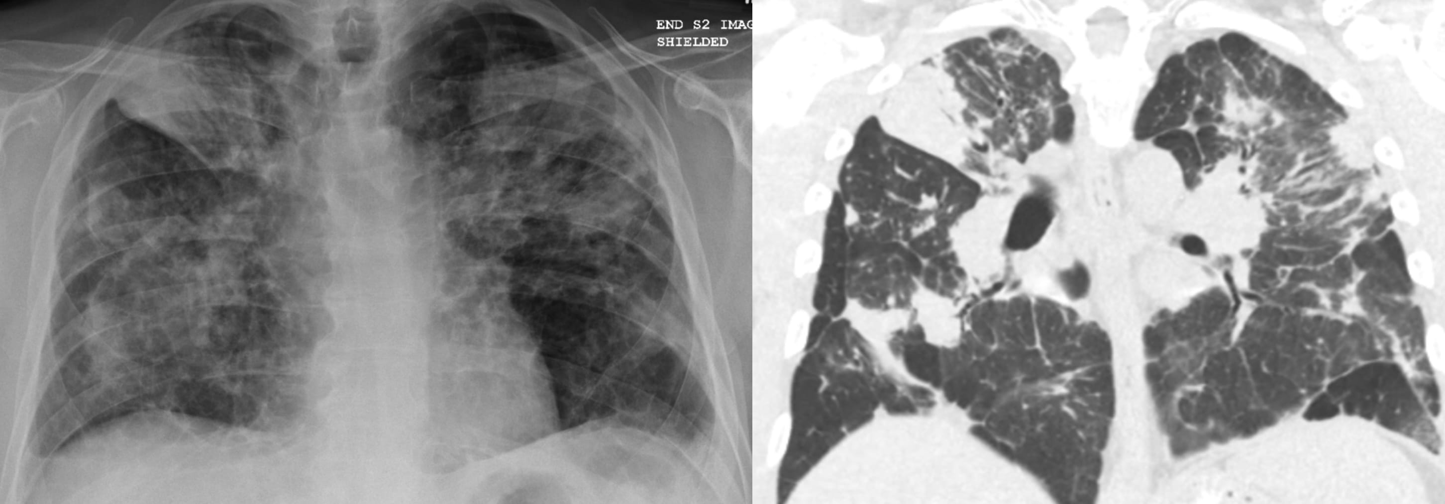 - Interstitial fibrosis with non-emphysematous lung cysts
