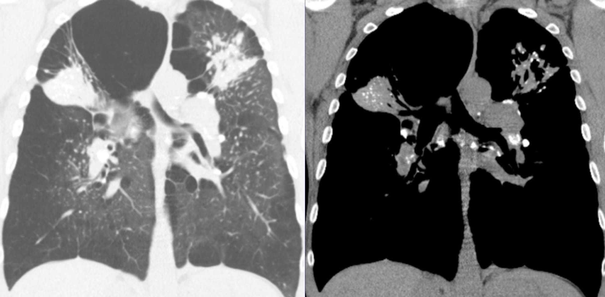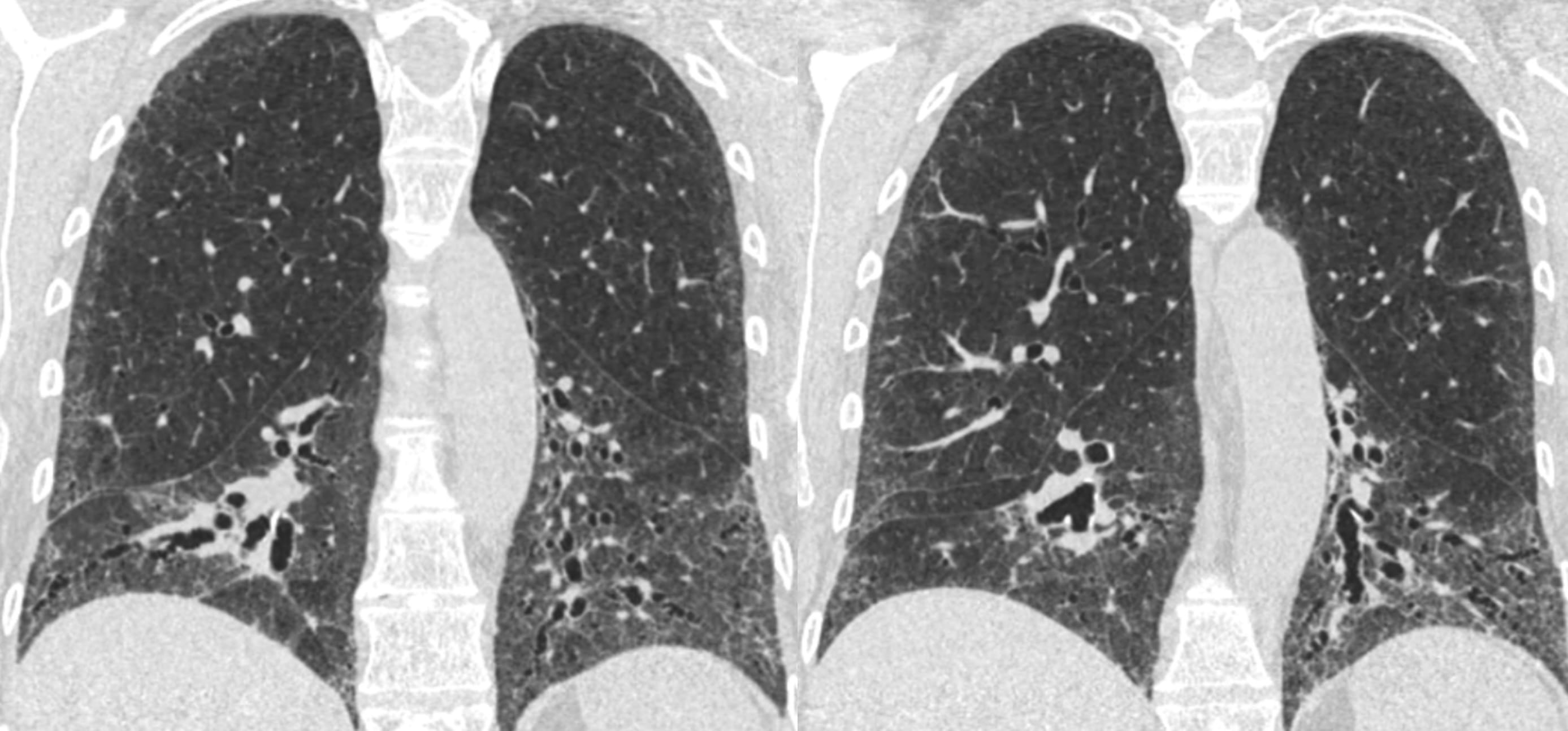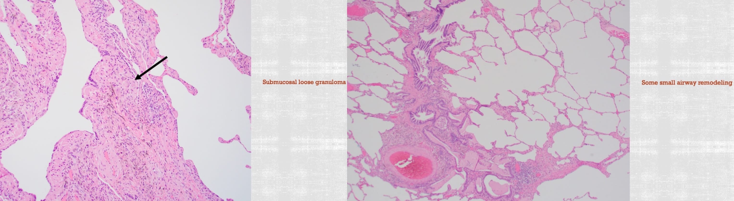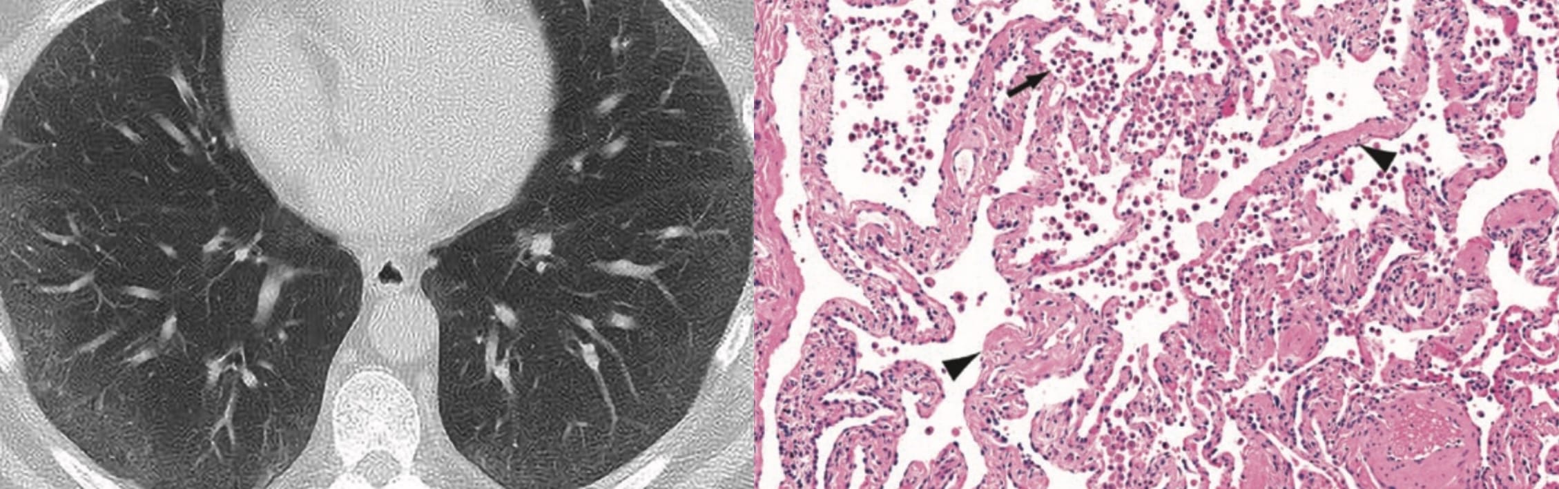 - Interstitial fibrosis with non-emphysematous lung cysts